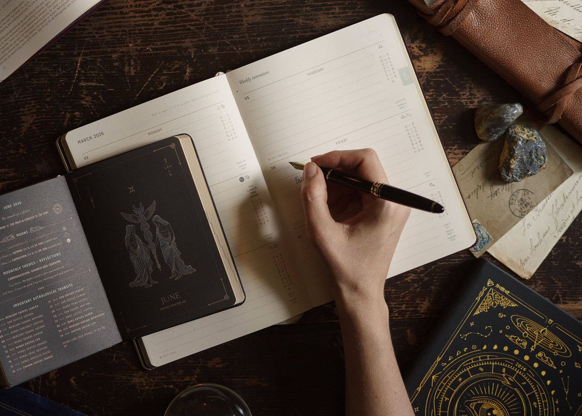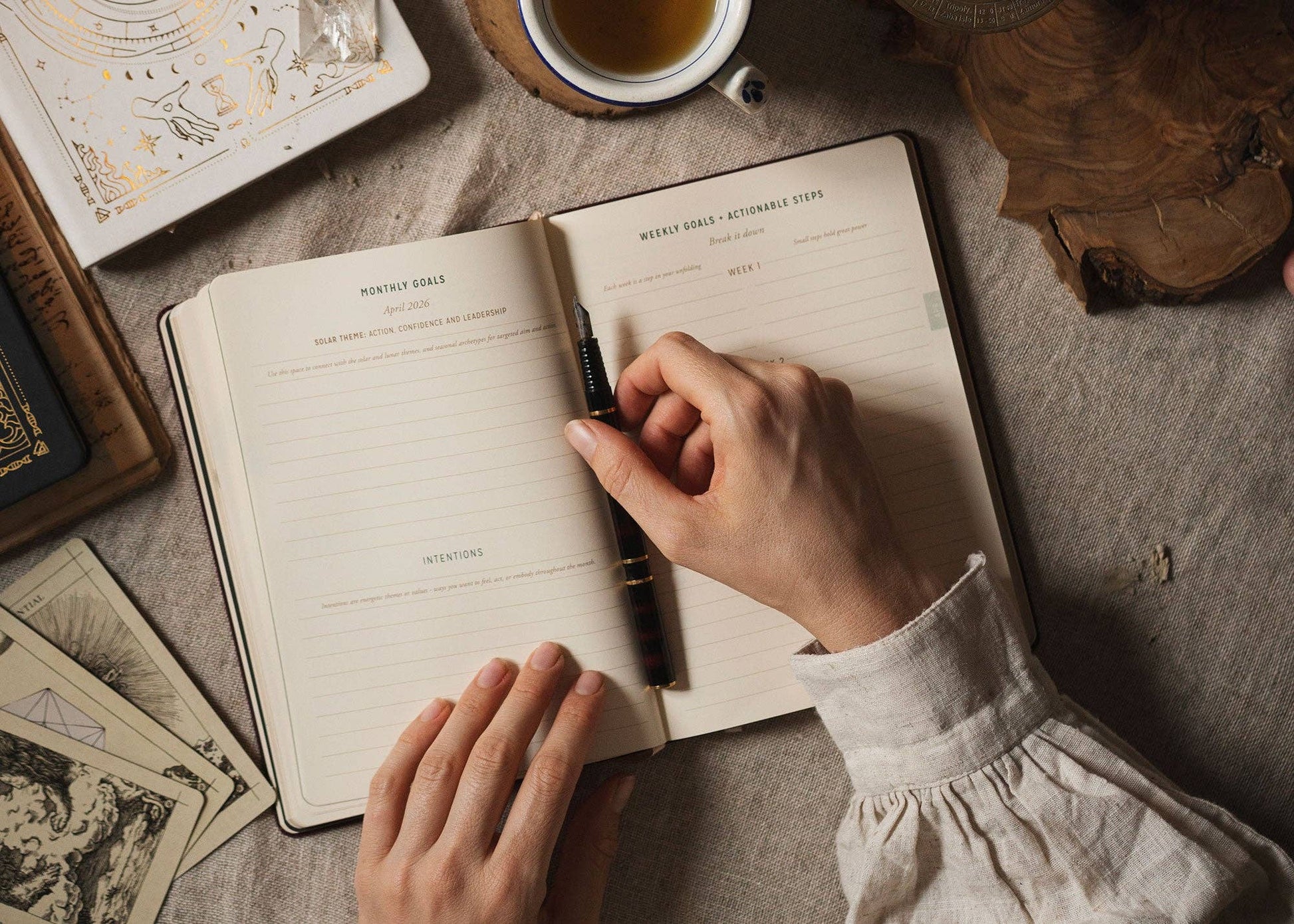 Loved and trusted by thousands worldwide—from the astro-curious to the seasoned astrologer—this guidebook helps you move through the year with clarity and rhythm. Use it to set holistic goals, connect with moon cycles, align with planetary guidance, and weave introspective journaling into your daily, weekly, and monthly rituals.