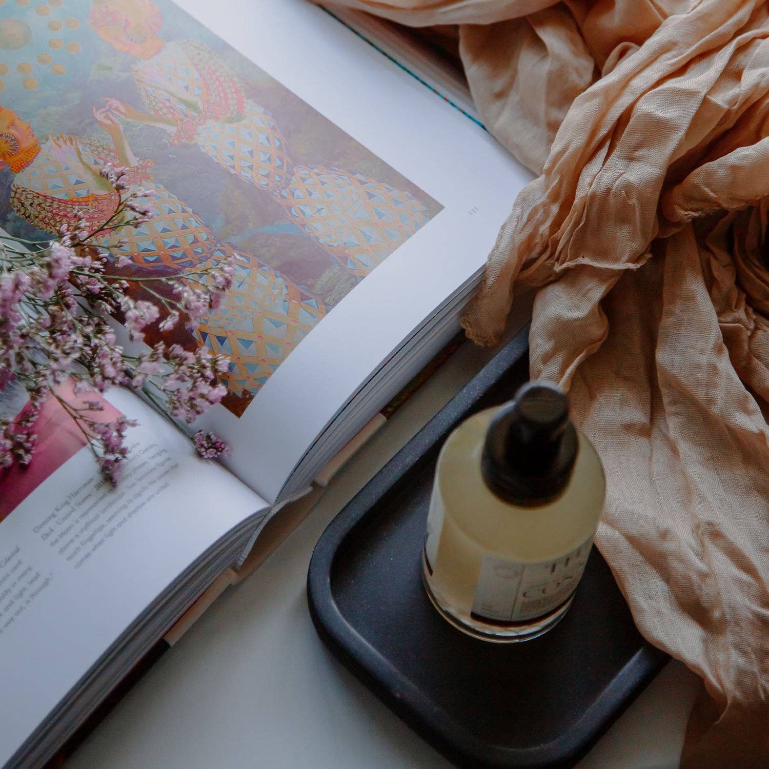 Alpha - Connect Room Spray has been inspired by the "Alpha" brain wave, promoting a sense of inner awareness and relaxation. A frequency-rich aromatherapy blend consists of luxurious rose, nurturing benzoin and balancing sandalwood has been infused with Rose Quartz crystals - Rose Quartz crystals are associated with self-love, connection and peace.
