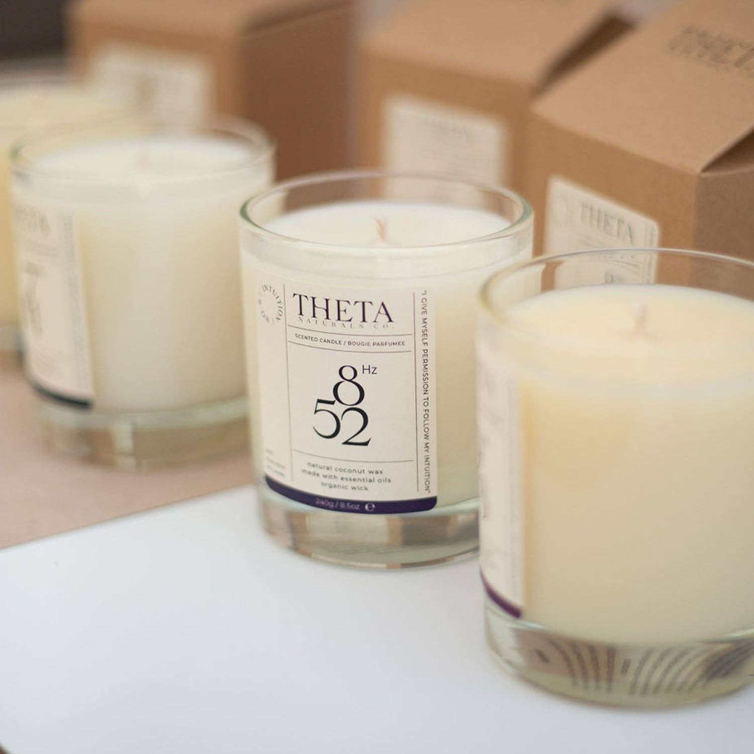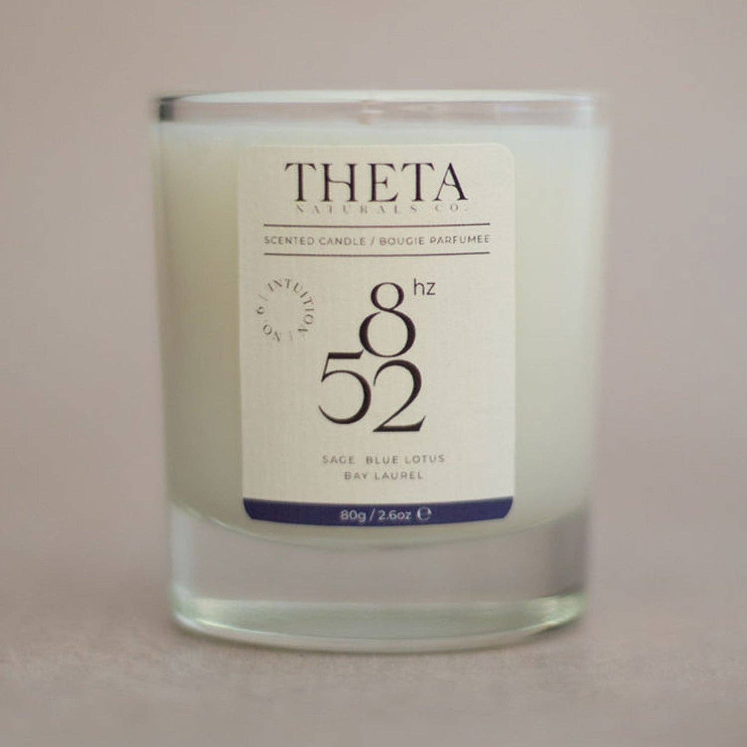 852Hz Intuition Candle (Third-Eye Chakra): Awaken your inner intuition with the enchanting blend of blue lotus, sage, and bay laurel. Let this candle heighten your awareness and guide you on your path of self-discovery.