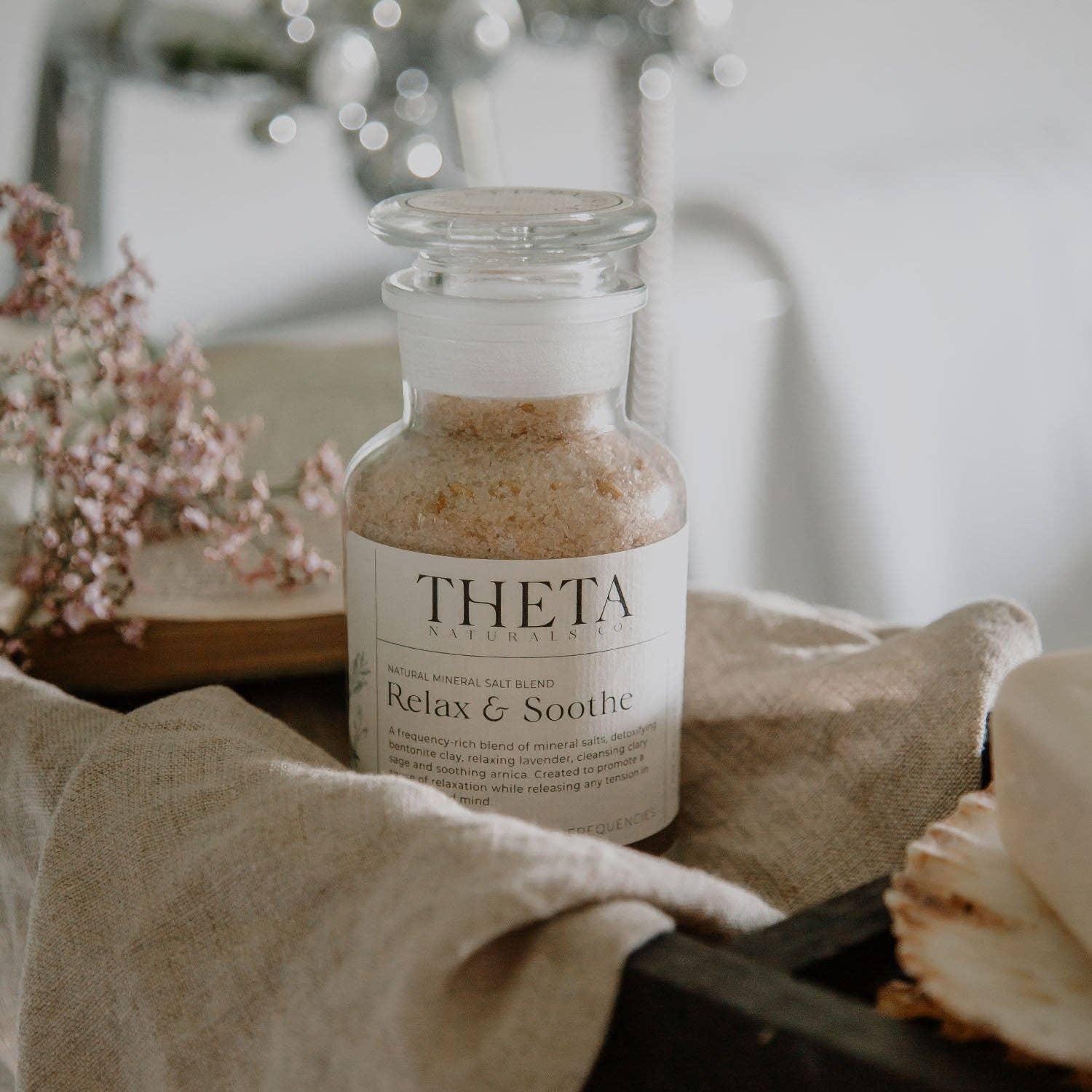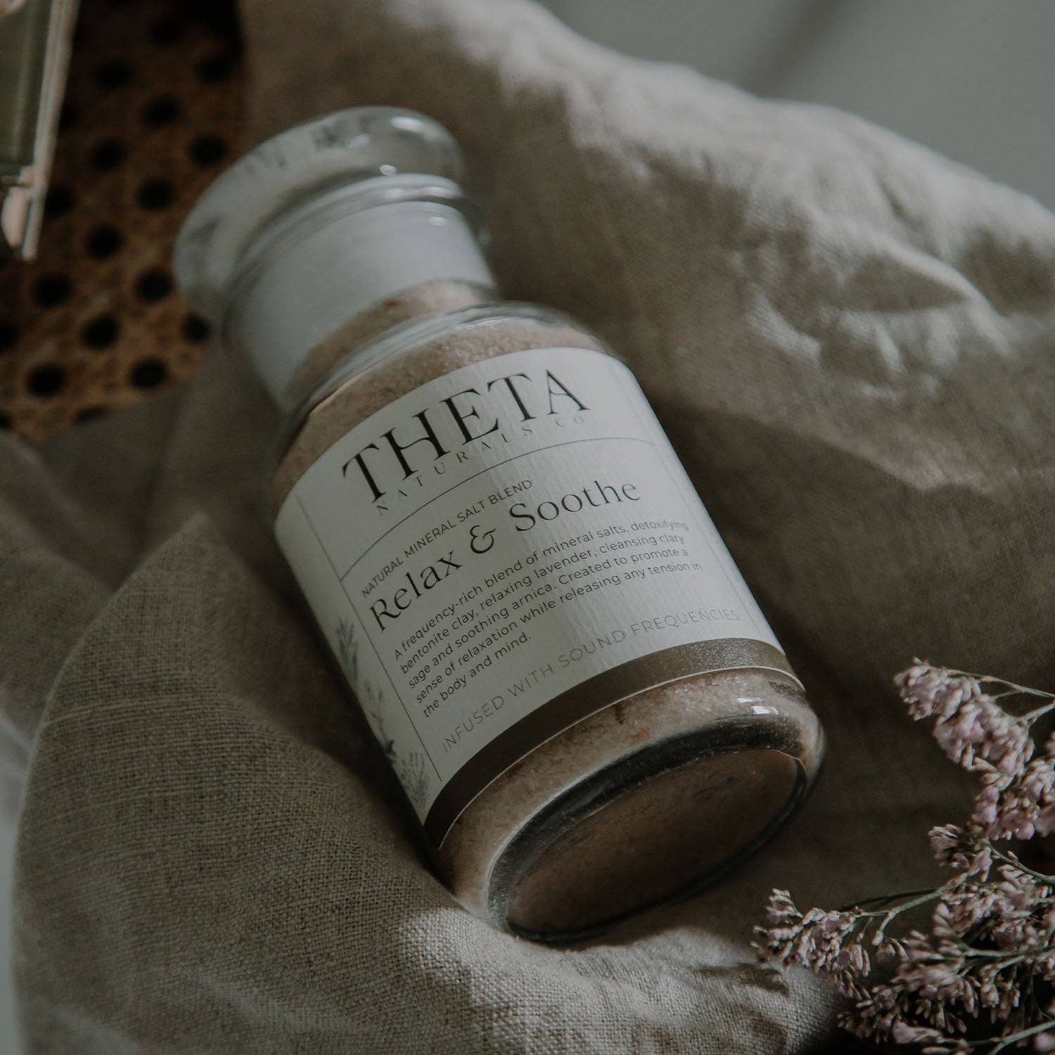'Relax & Soothe' is a frequency-rich blend of natural mineral salts, detoxifying bentonite clay, relaxing lavender, soothing arnica and cleansing sage. Created to promote a sense of relaxation while releasing any tension.