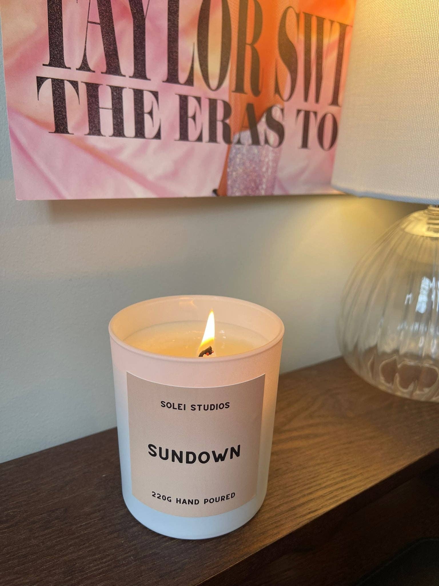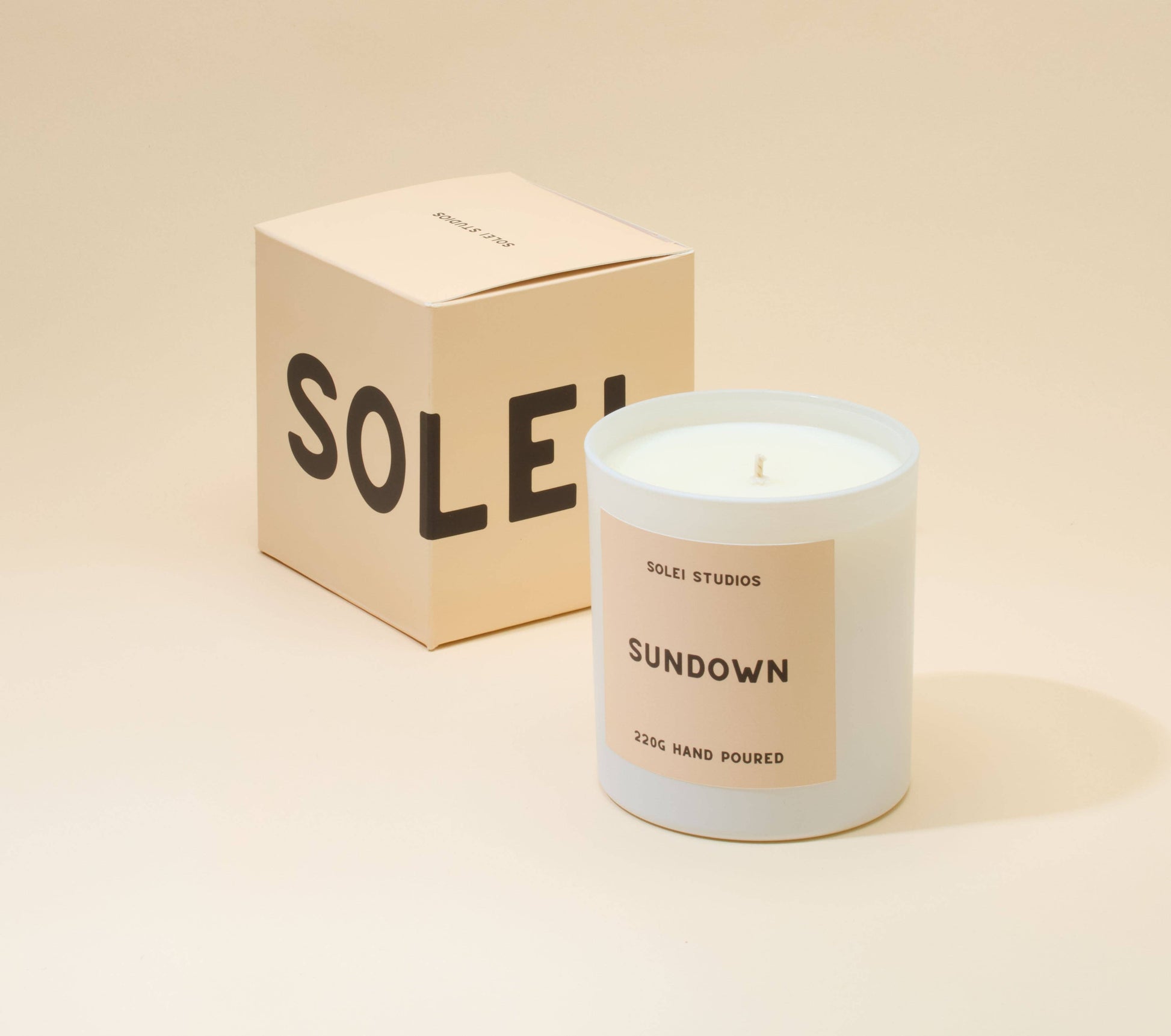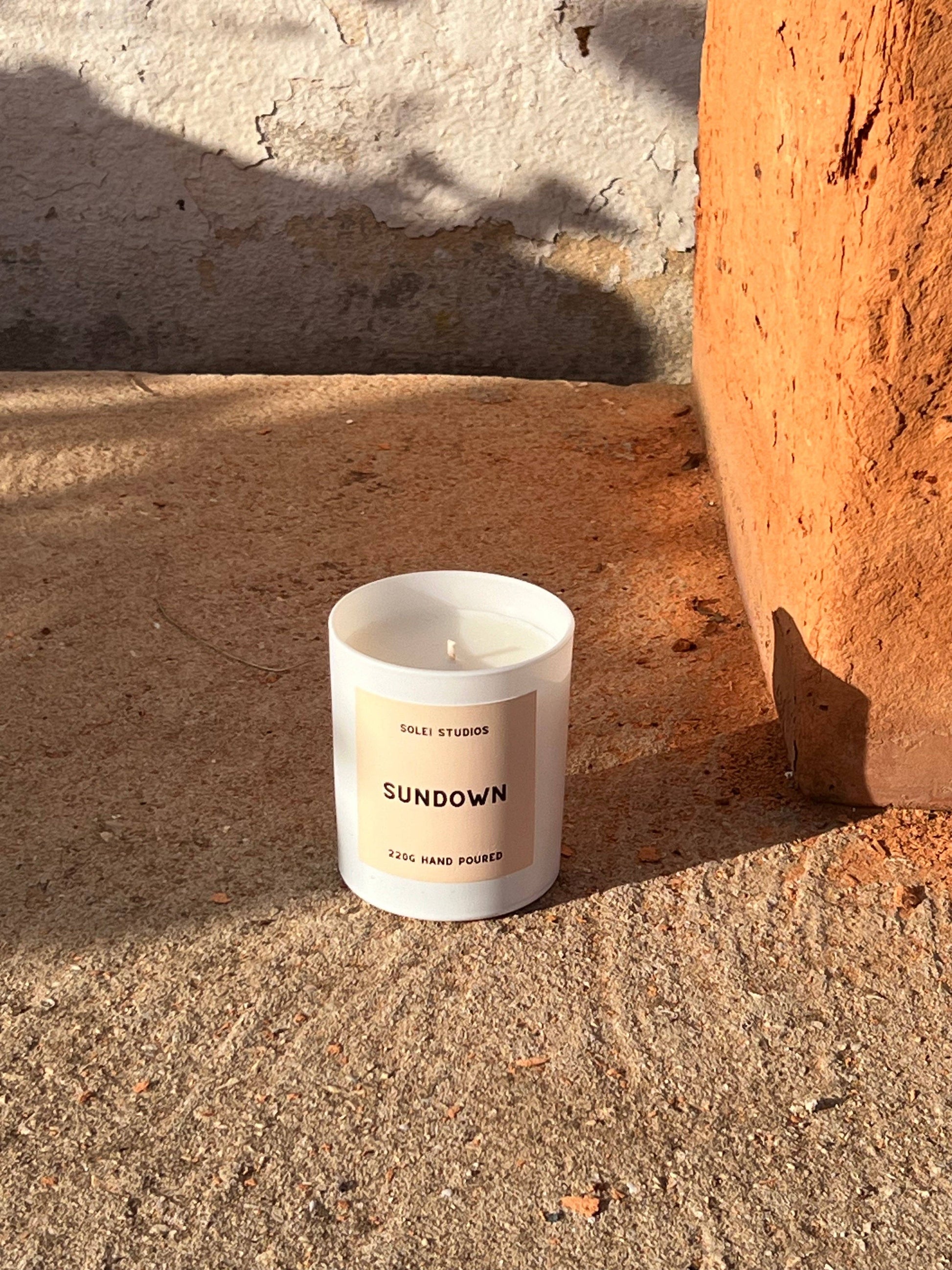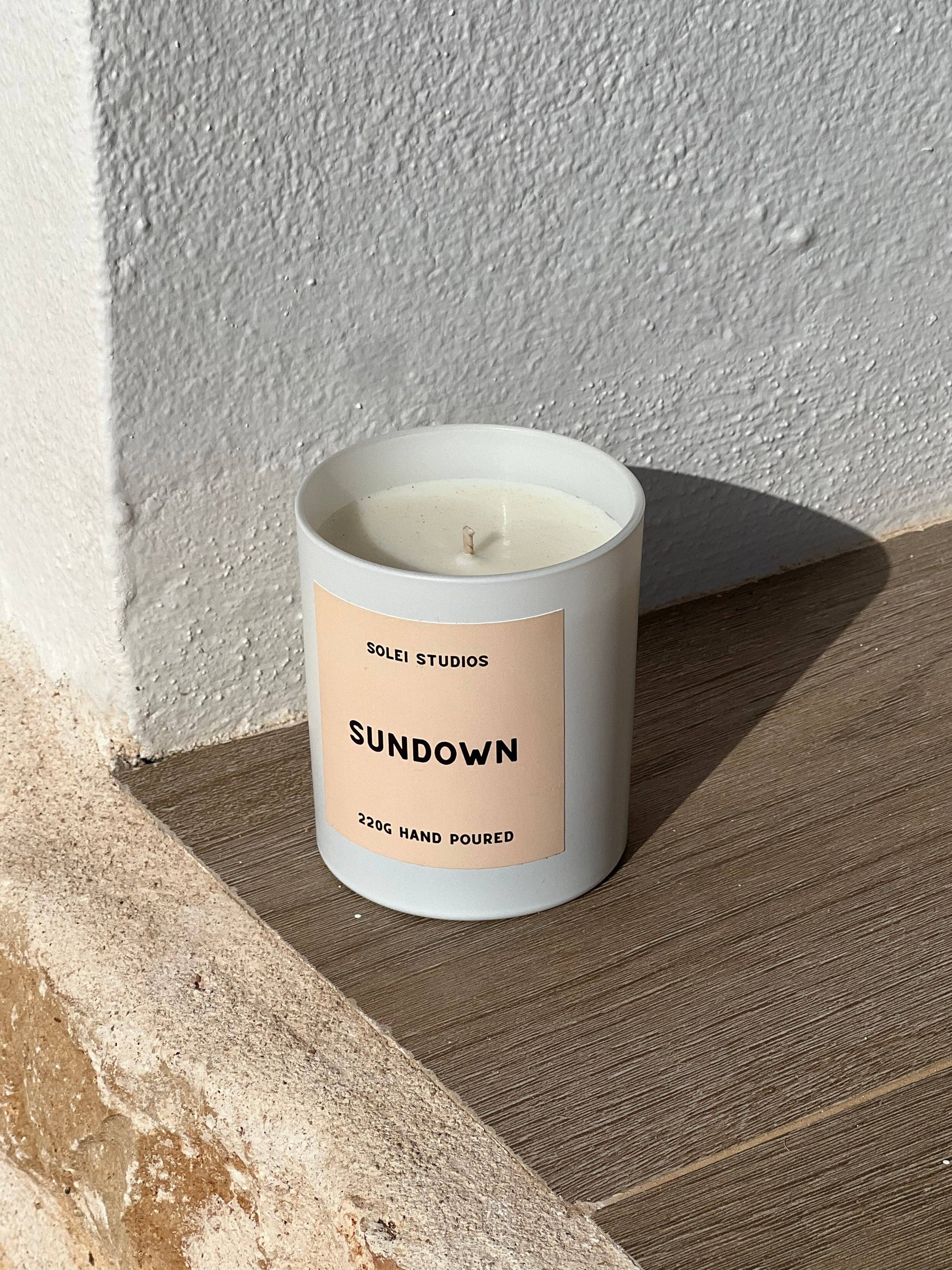 Scent notes: Sandalwood, Saffron, Clove, Vanilla, Amber Sundown is our much beloved cosy and comforting candle. A great evening scent that's a 'safe buy' - it's done really well with our stockists and direct customers. Details: - Burn time: 40 hours - Wax: Coconut & Rapeseed wax - Hand poured in SE London